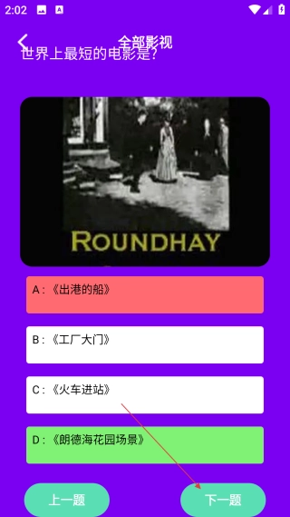 在答题页面中,点击【下一题】按钮,就能接着开展影视知识的答题活动。