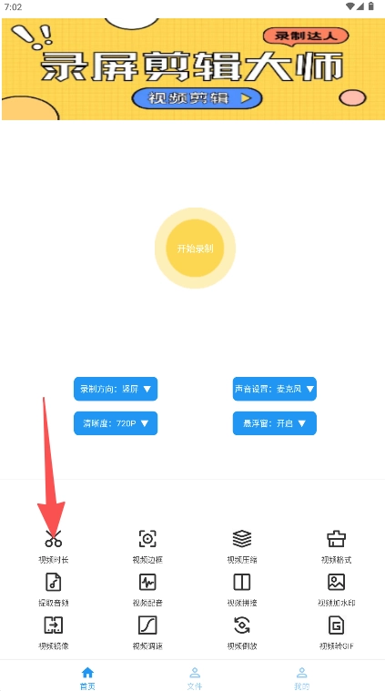 在软件首页点击“视频时长”启动屏幕录制功能。