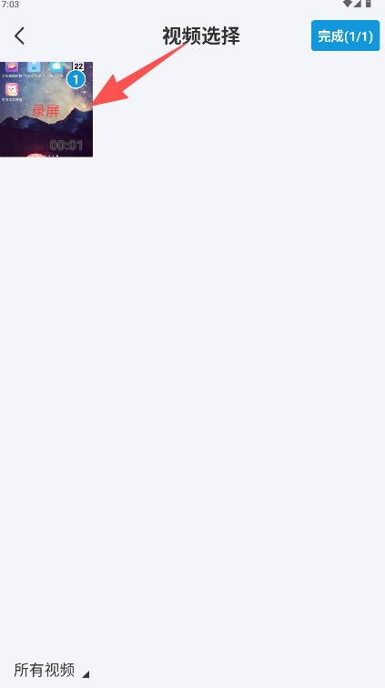 录制完成后,在文件列表里找到你要处理的目标视频并选中它,接着点击右上角的“完成”按钮,这样就能进入视频的编辑界面了。