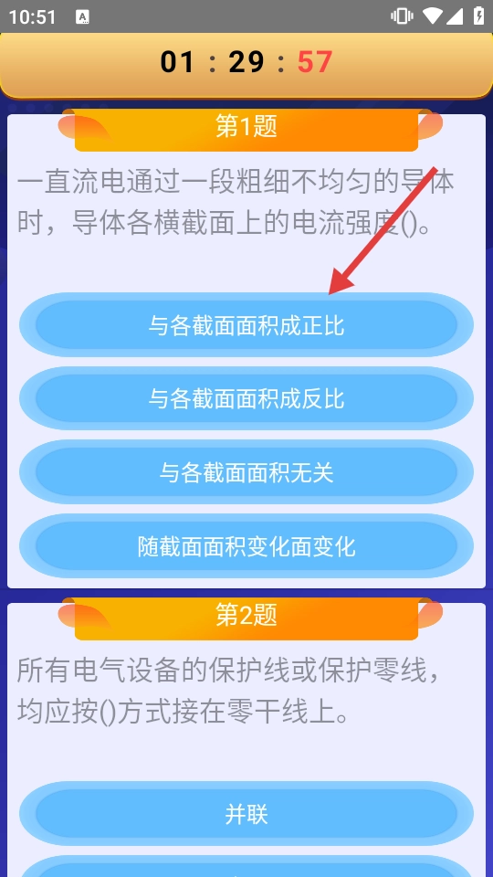 在进行电工复审模拟题作答时,当直流电通过粗细不均匀的导体时,其电流强度与导体的截面面积没有关系,需选择对应的选项来完成这道题的解答。