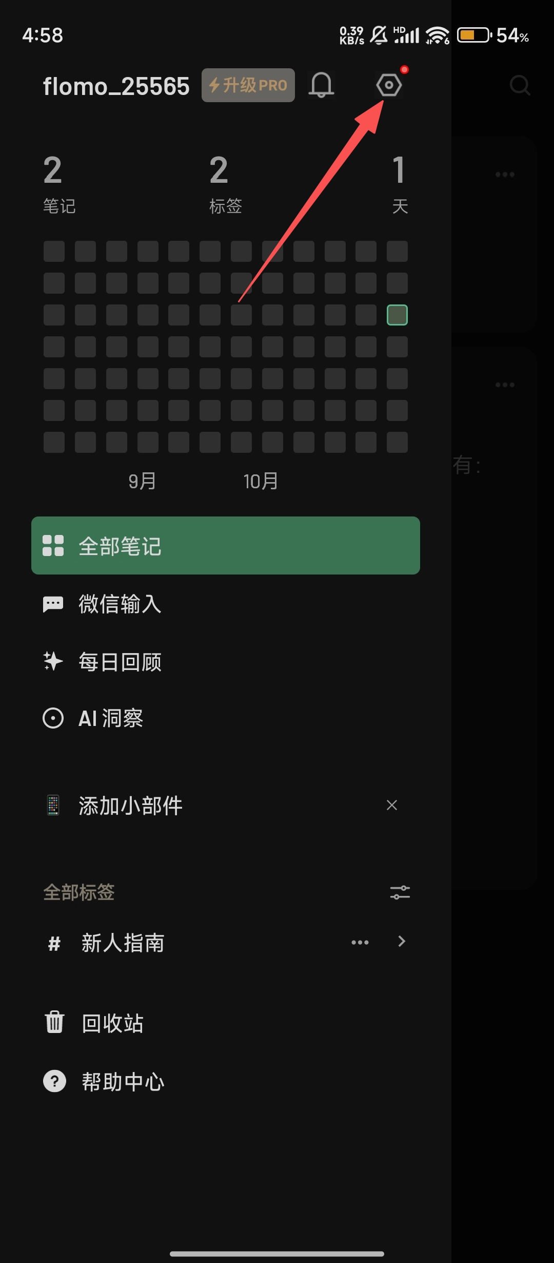 打开flomo浮墨笔记应用,点击界面左上角的菜单按钮,待侧边栏展开后,即可启动退出登录的相关操作流程。
