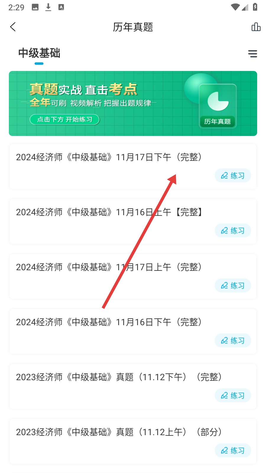 在历年真题页面中找到并点击【真题试卷】选项,即可进入试题详情页面。