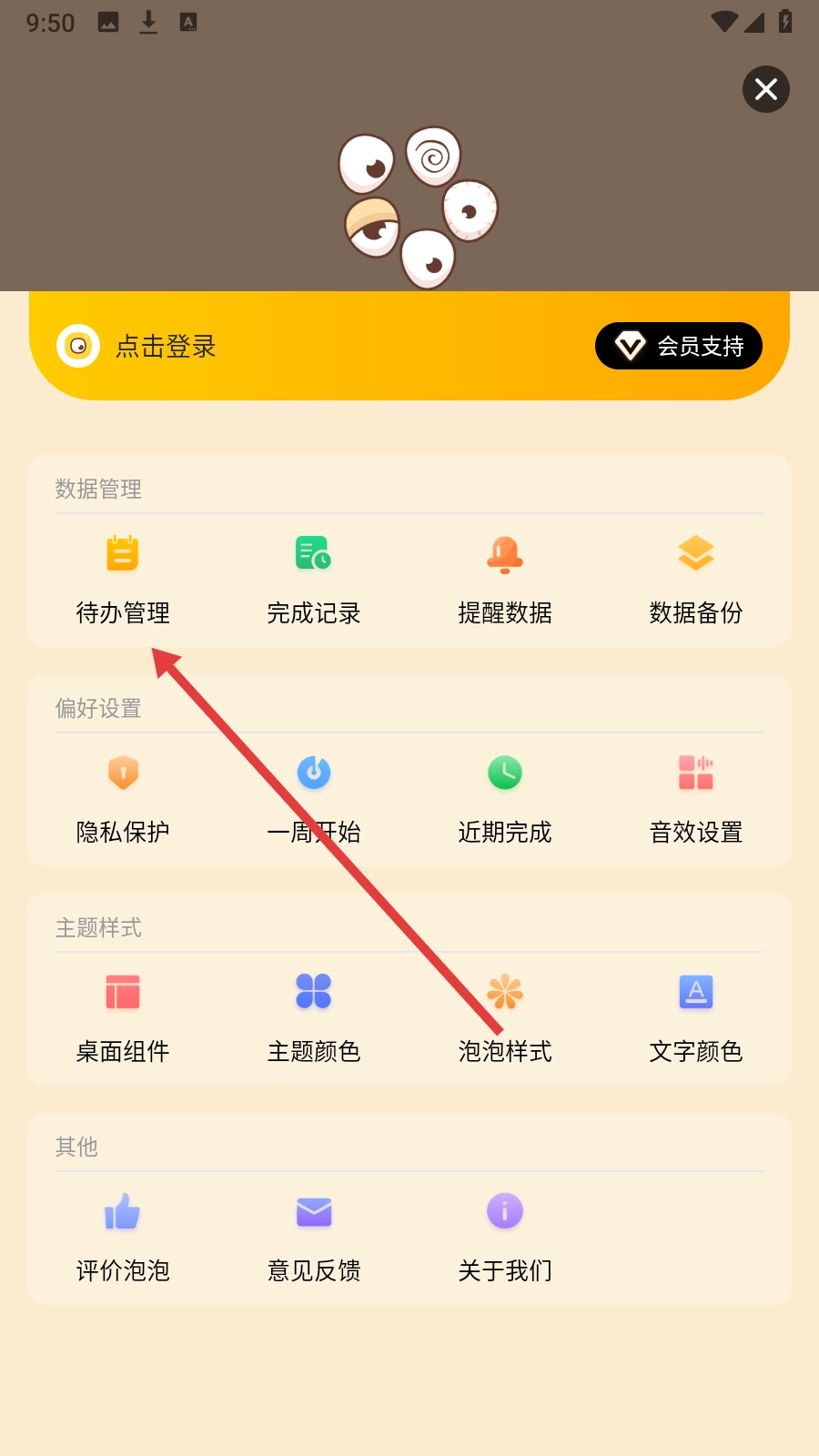 在设置页面点击【待办管理】,进入待办管理页面。