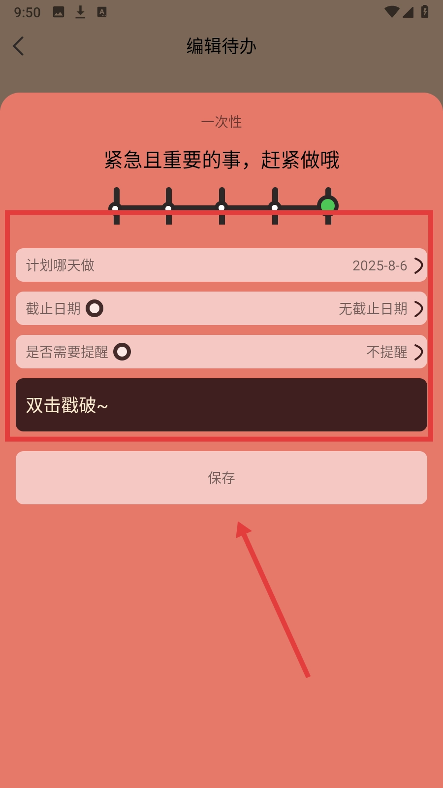 在待办编辑页面添加或修改待办事项后,点击【保存】按钮,就能完成待办的编辑操作。