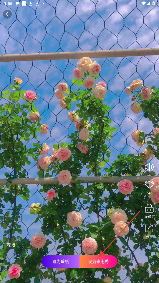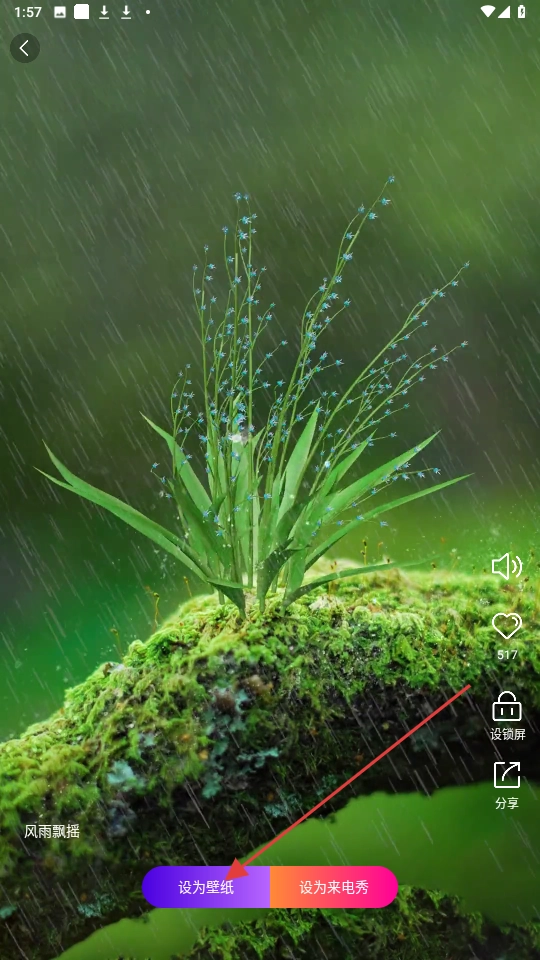 预览界面点【设为壁纸】可将该视频设为手机壁纸。