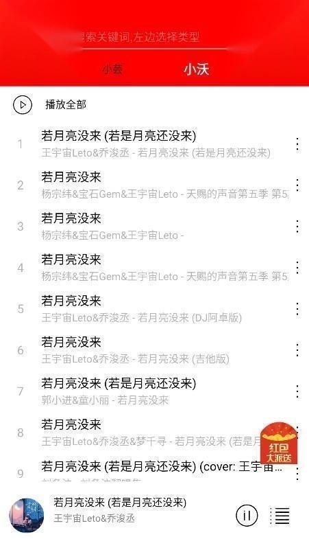 2、直接快捷搜索,支持按照不同音源平台来进行筛选查看,同时为大家提供了热搜榜;