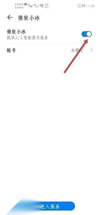 5、点击进入微软小冰,选择关闭该服务功能,就可以关闭虚拟男友。