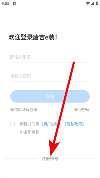 在唐吉e装的登录页面,点击“注册账号”按钮,即可进入注册页面。