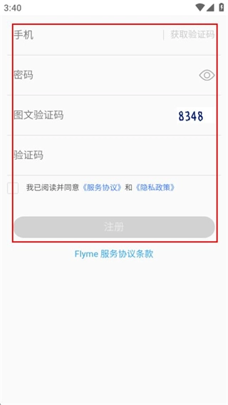 在登录页面点击注册选项,就能进入Flyme账号注册页面。