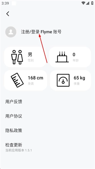 在个人信息页面,点击“注册登录Flyme账号”区域,即可进入账号登录页面。