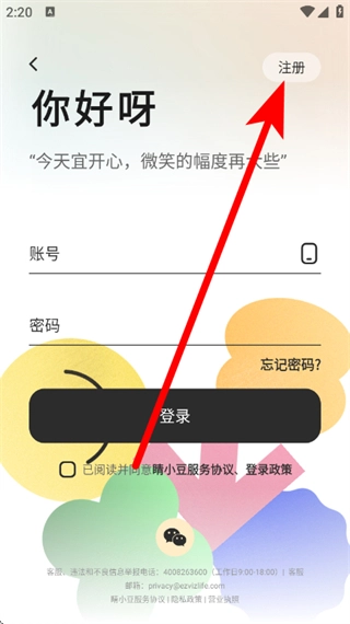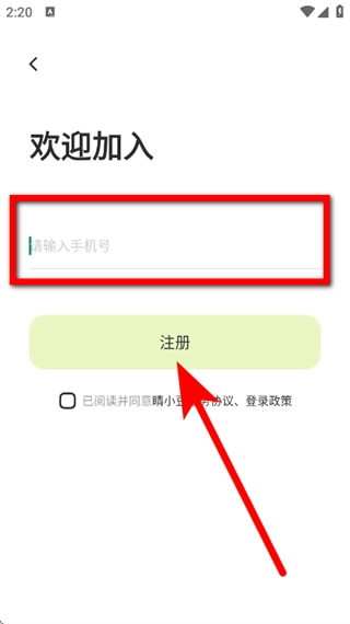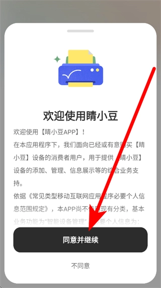 打开睛小豆应用,当出现提示弹窗时,点击“同意并继续”按钮,即可进入登录页面。