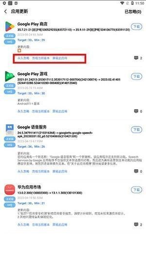 3、当然,您也可以选择忽略您不想更新的应用,这是您的权利