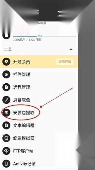1、进入MT管理器中文版,点击左上角选项并点击安装包提取;