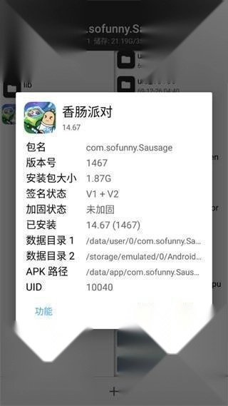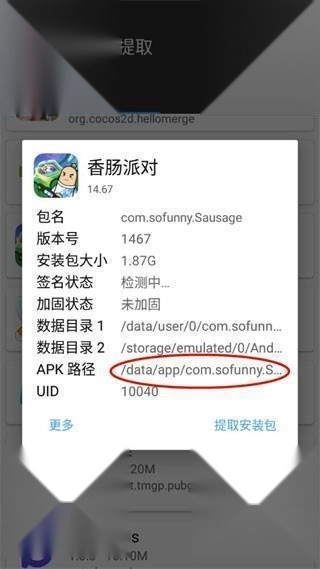 2、找到并点击自己需要提取安装包的游戏(小编以香肠派对为例);