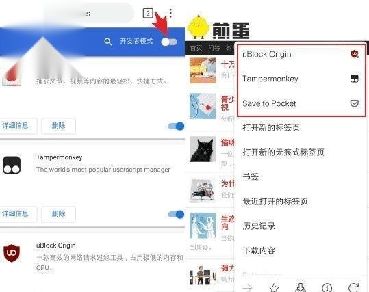 ps:虽然对扩展的支持还不错,但由于扩展都是基于桌面浏览器开发的,因此部分扩展即使安装好了,在手机上使用也可能存在问题,这个没办法。
