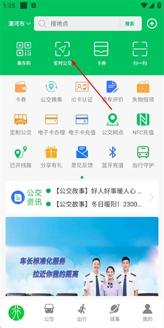 在公交服务首页找到并点击实时公交选项,即可进入公交线路查询页面。
