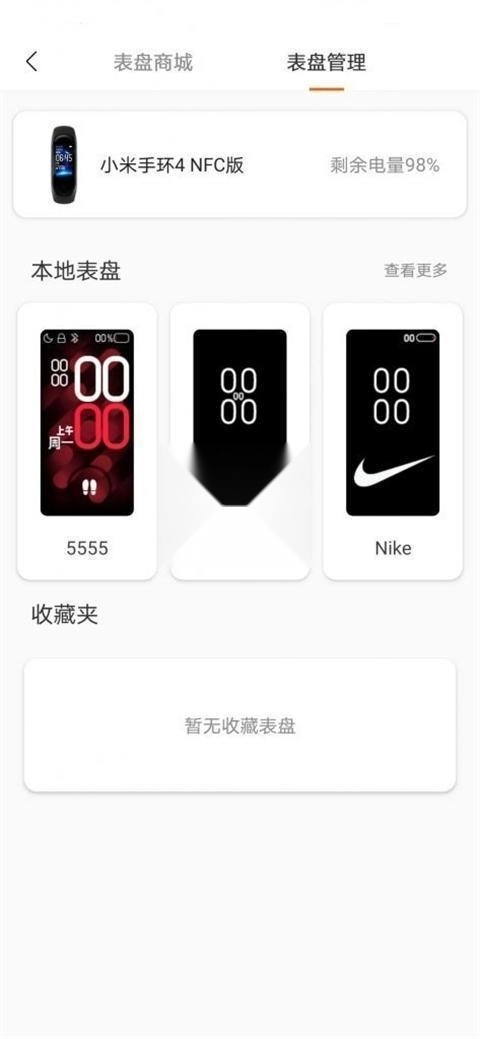 5、连接手环后,在小米运动里选中设备--->表盘商城--->表盘管理。就可以看到自己制作的表盘了,选中一个就可以自动同步了