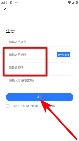 输入验证码,设置密码,勾选相关选项后,点击注册按钮,即可完成账号注册流程。