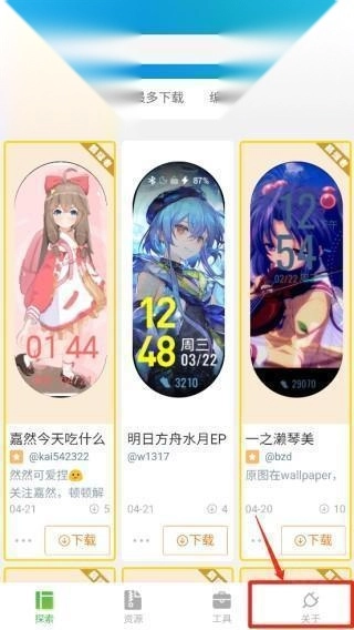 1、首先从本站小米手环表盘自定义工具App,打开,选择“关于”。