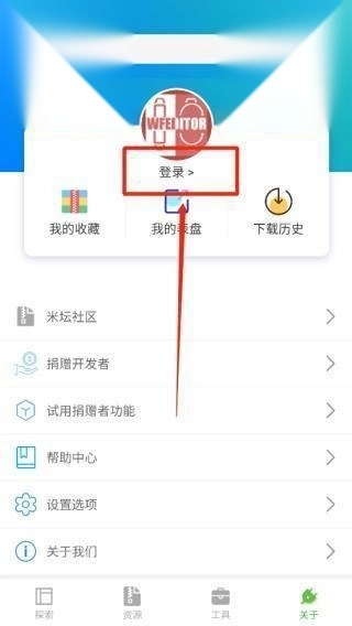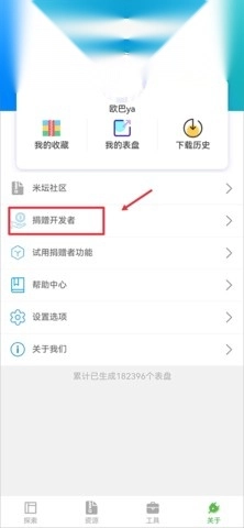 1、首先登录账号,然后在关于界面中点击捐赠开发者