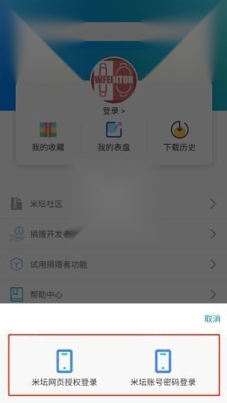 2、点击登录,使用米坛账号登录,如果没有米坛账号的话可以选择注册。