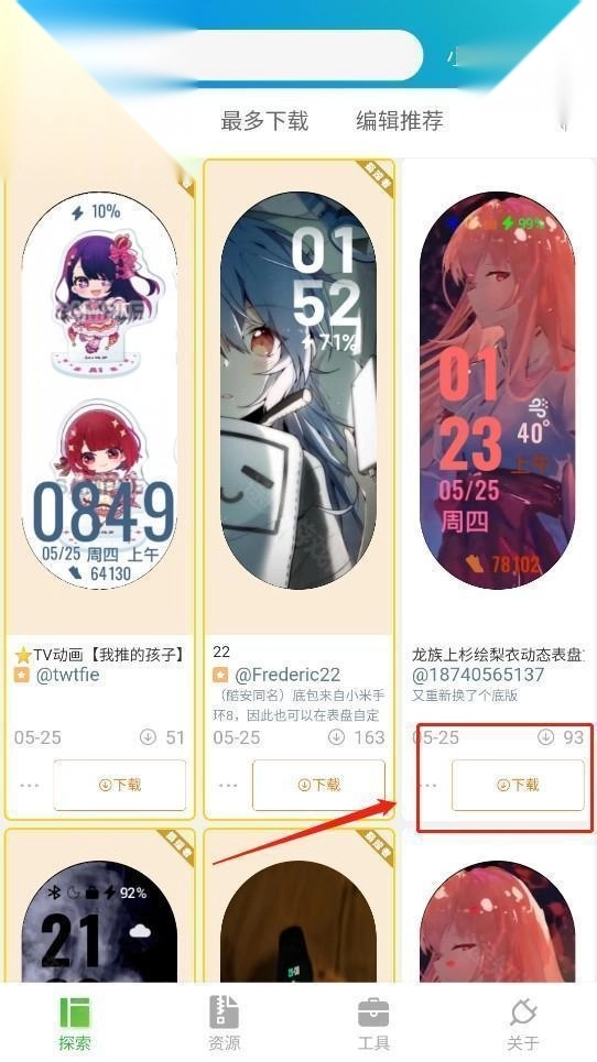 ①在资源中找到的表盘,点击后:
