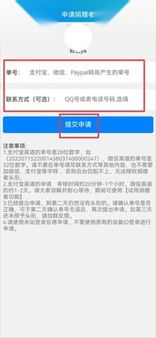 3、然后将转账产生的单号和联系方式填写完成后点击提交申请即可