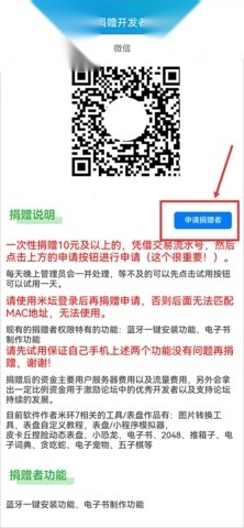 注:申请捐赠者后可获得蓝牙一键安装功能、电子书制作功能