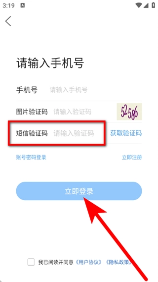 在输入框中填写验证码,勾选相关选项后,点击“立即登录”按钮,即可完成登录操作。