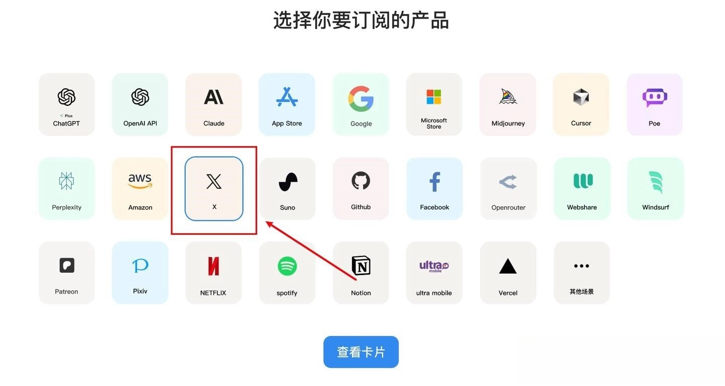 虚拟信用卡平台,支持订阅支付的 X 和 其他平台服务。