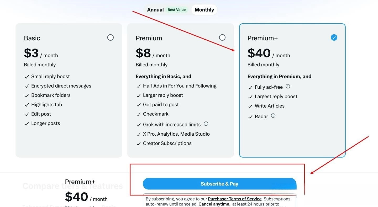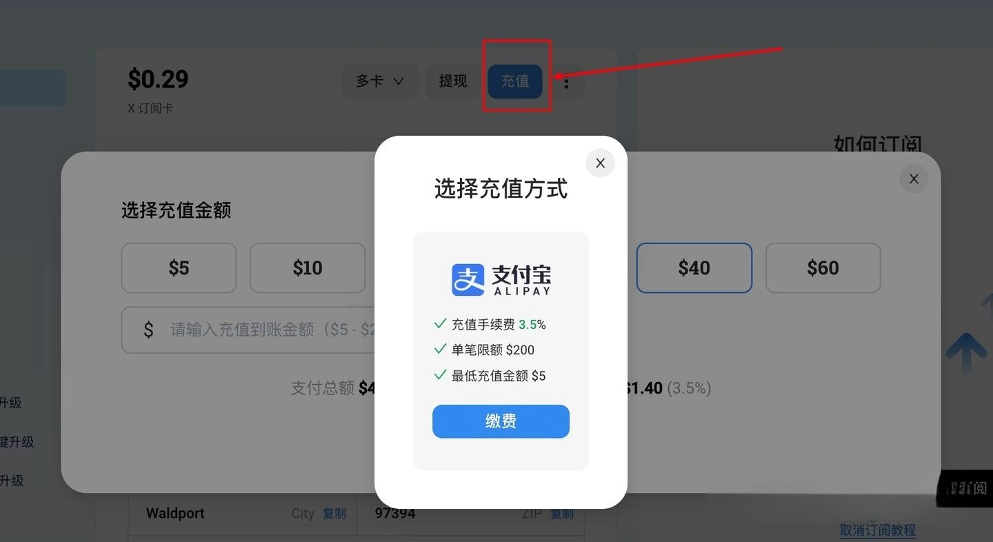 而这次订阅 X 的 Premium + 服务,需要 40刀。 所以你充值40刀就行。 不需要充太多。