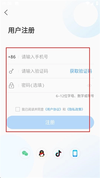 在注册页面填写相关信息,勾选对应的协议条款后,点击注册按钮即可完成账号注册流程。