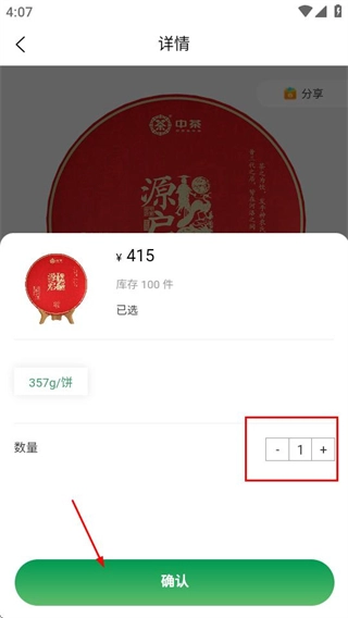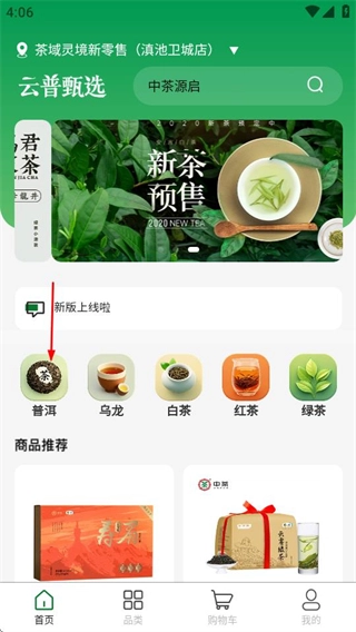 在首页点击目标茶叶分类选项,进入选购商品页面。