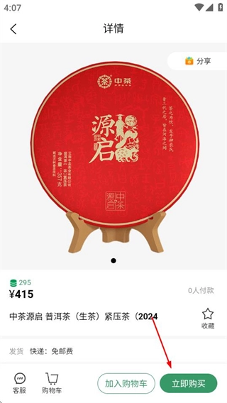 在选购商品页面选择目标商品,进入商品详情页面。