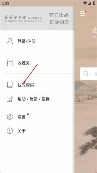 在唐诗鉴赏词典首页,点击左上角的菜单按钮,即可打开功能列表。