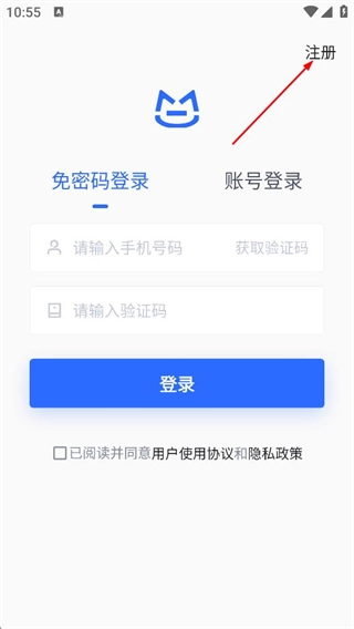 在登录页面,点击右上角的注册按钮,即可进入快速注册页面。