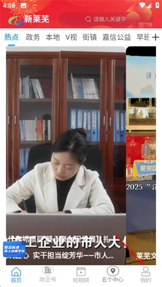 1、打开新莱芜,在首页点击我的,进入我的页面。