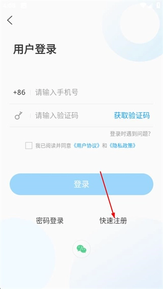 在用户登录界面,点击快速注册选项,进入注册页面。