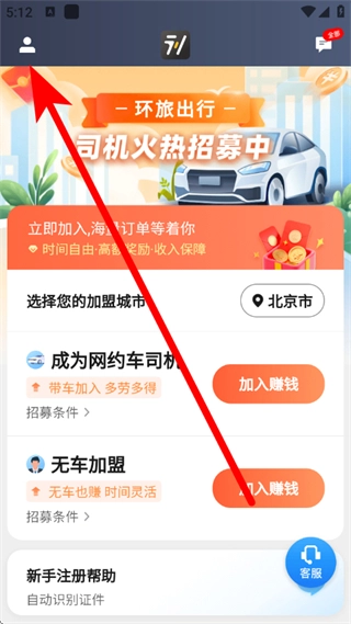 打开云上竹山,在首页点击左上角的个人中心图标。