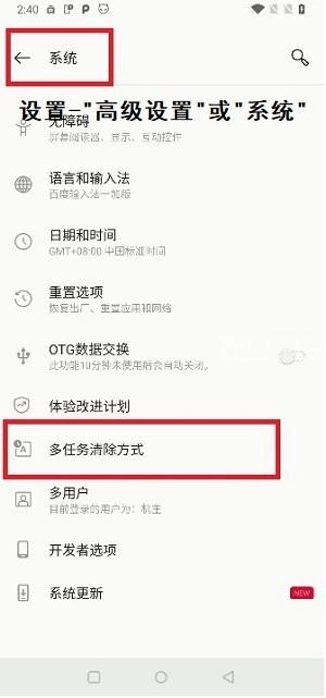 2、设置——系统/高级设置——多任务清除方式——普通清除;