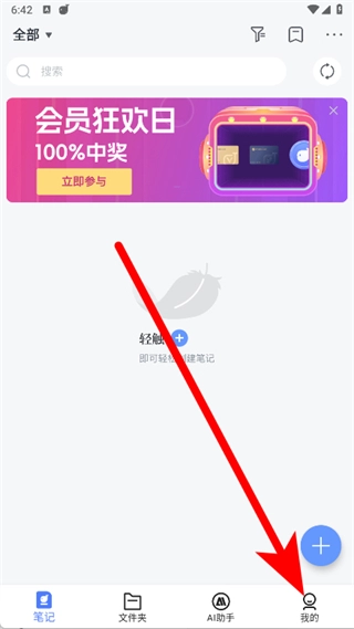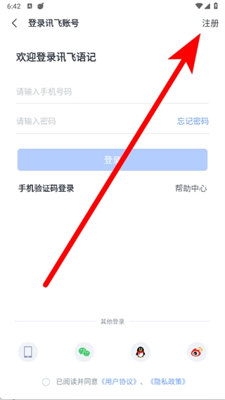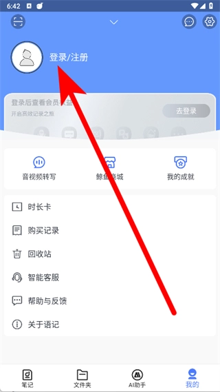 打开讯飞语记,点击底部导航栏的我的。