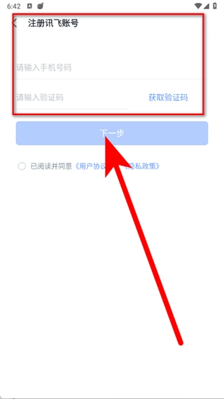 请输入手机号码,点击“获取验证码”按钮,随后输入收到的验证码,再点击“下一步”按钮。