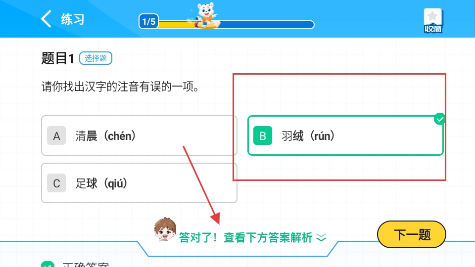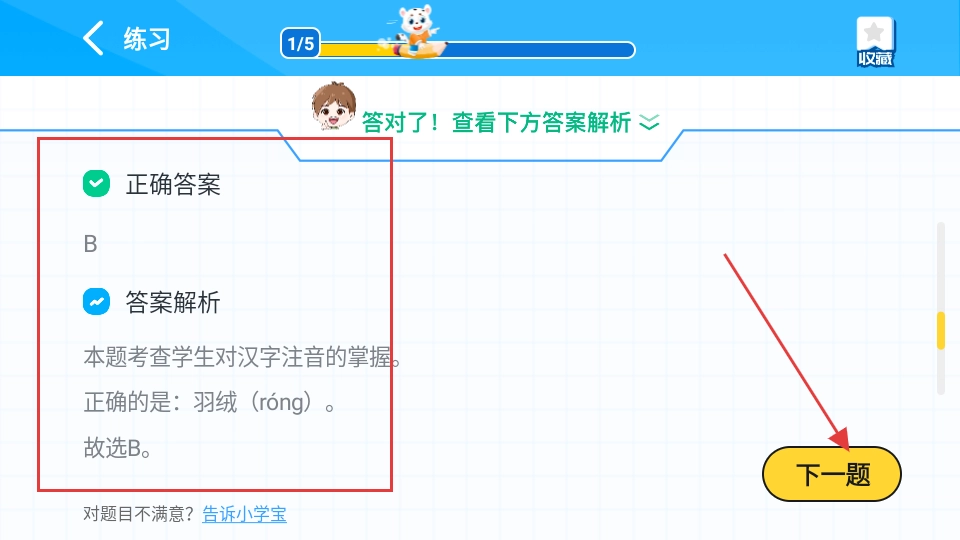 进入练习界面,做完题目后,点击查看下方的答案解析。