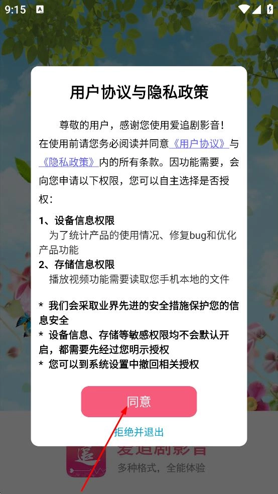 在用户协议和隐私政策的弹窗里,点击同意按钮后,就能进入爱追剧影音的主界面了。