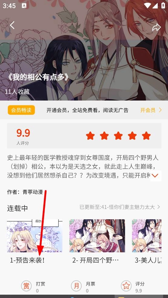 点击目标漫画,例如《我的相公有点多》,即可进入该漫画的详情页面。