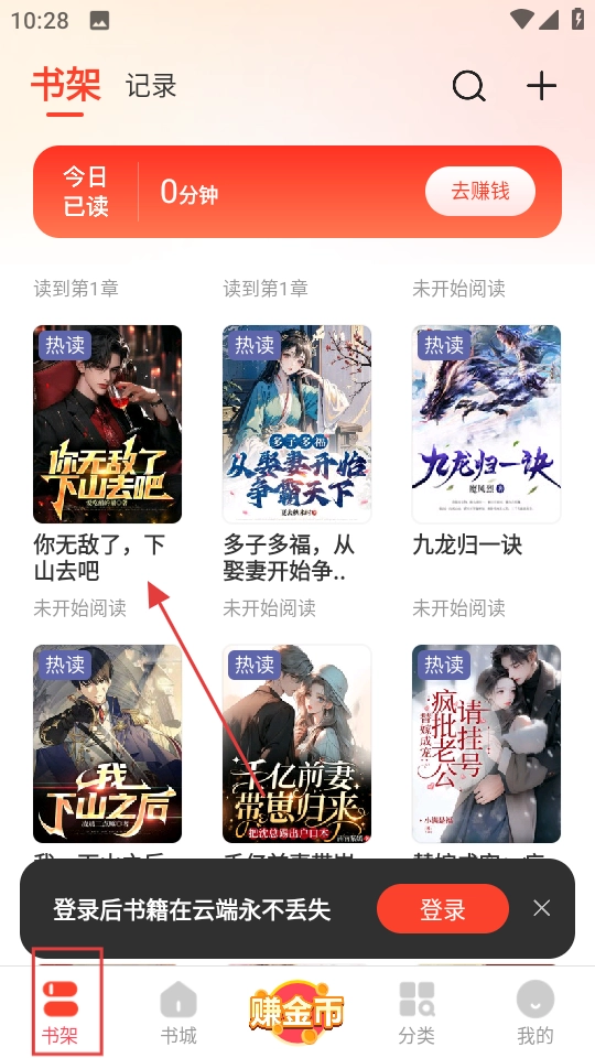 在书架页选你无敌了下山去吧,进入阅读页。
