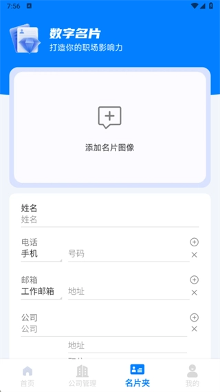 用户能够对信息进行编辑、上传Logo来制作电子名片,系统提供多模板选择并且支持便捷的分享功能。