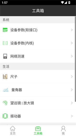 点击下方的工具箱,里面涵盖了系统、生活等不同类别的工具。