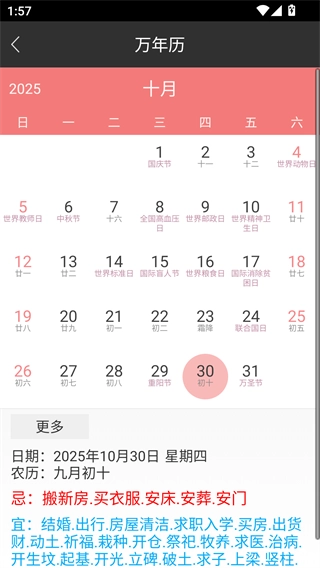 这段万年历信息十分实用,借助查看它的方式,就能轻松知晓日历相关内容。