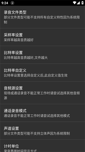 点击右上角的书写按钮就能进入设置界面,在这里可以对录音参数进行相关设置。